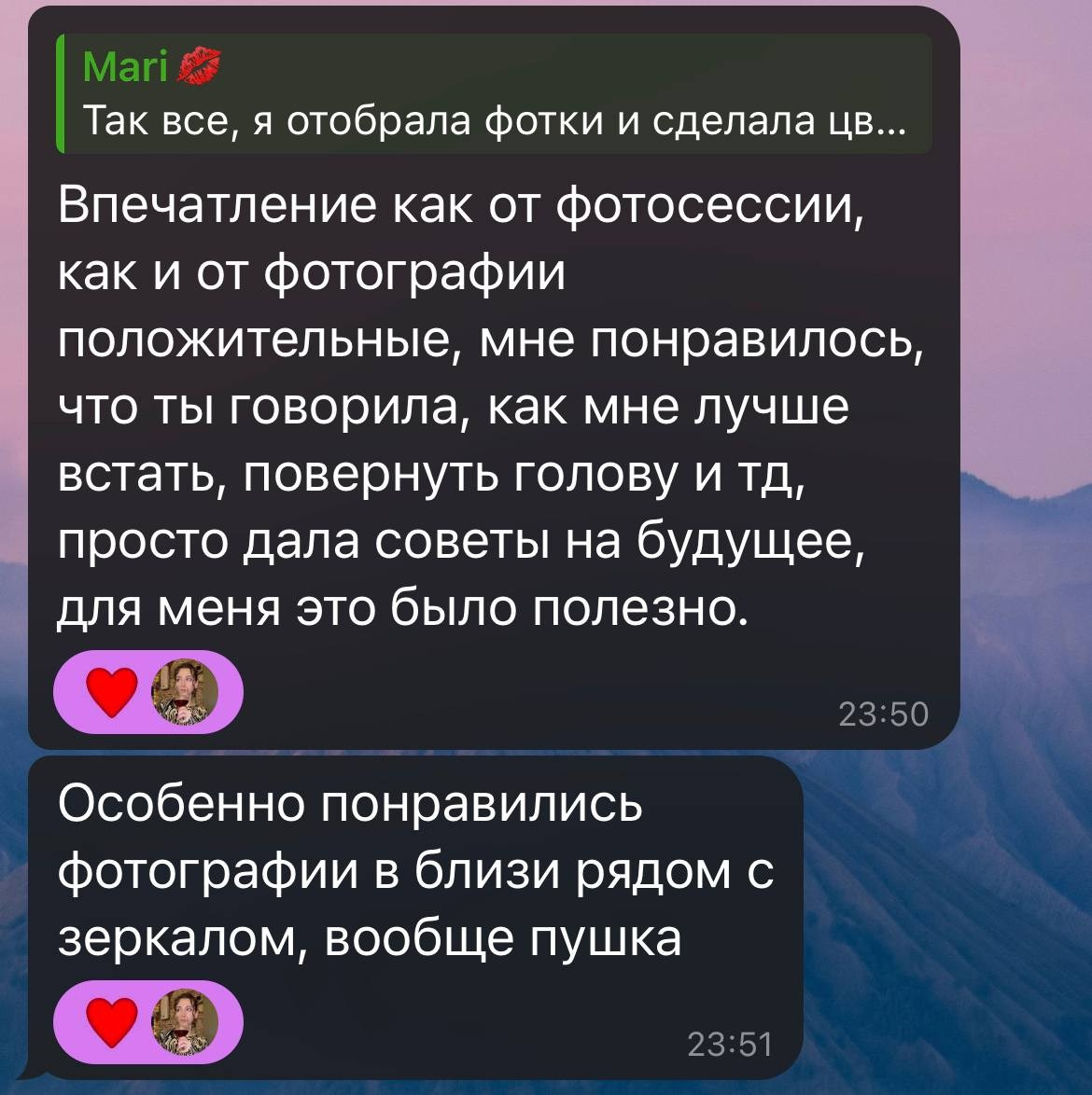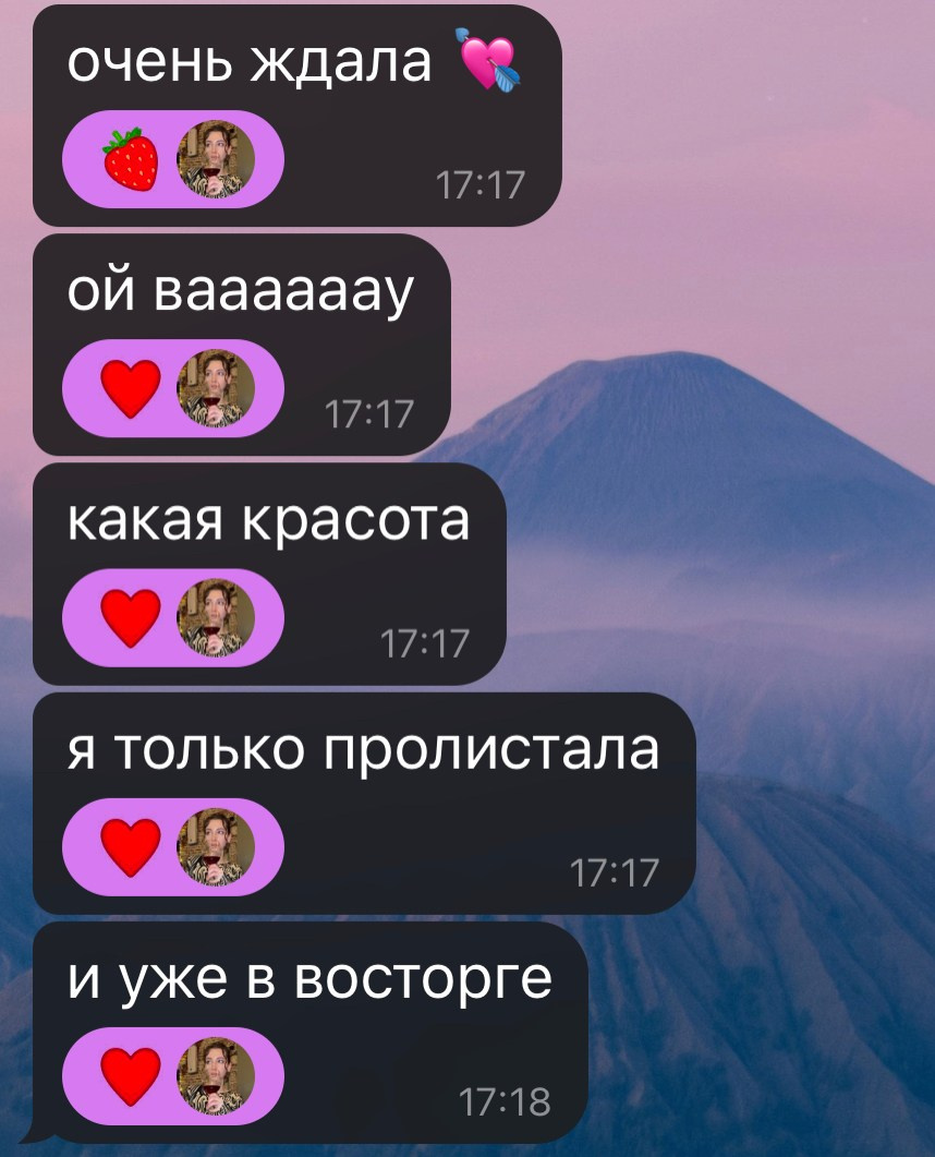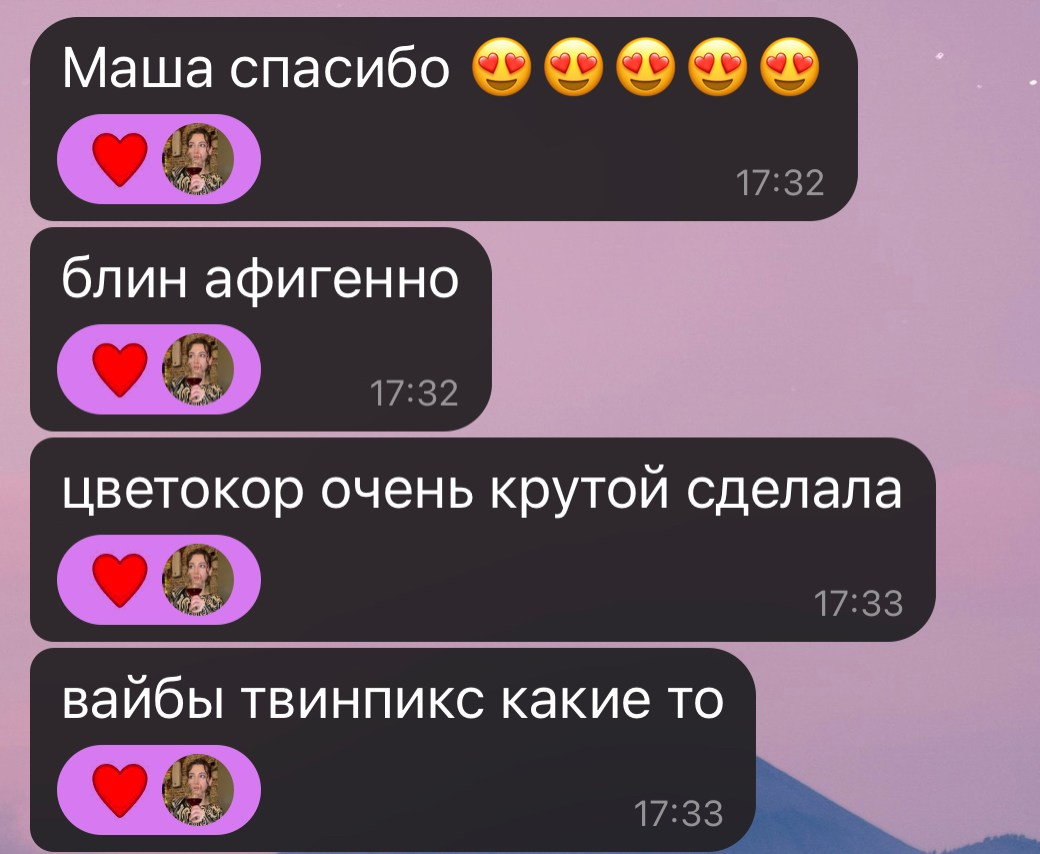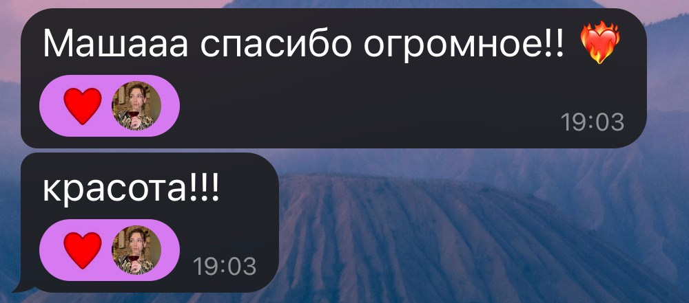 Здесь вы можете увидеть, какие эмоции испытывают клиенты, когда я присылаю им готовые работы) Надеюсь, это поможет нам познакомиться лучше и стать ближе. Больше отзывов можно посмотреть в Инсте или ВК в актуальном «отзывы».